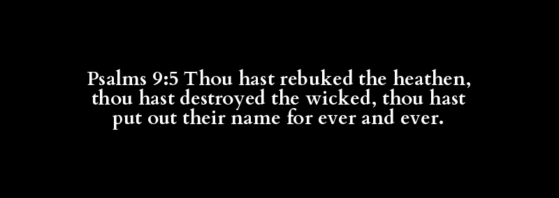 Psalms 9:5 Thou hast rebuked the heathen, thou hast destroyed the wicked, thou hast put out their name for ever and ever.