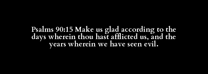 Psalms 90:15 Make us glad according to the days wherein thou hast afflicted us, and the years wherein we have seen evil.