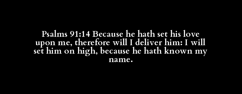 Psalms 91:14 Because he hath set his love upon me, therefore will I deliver him: I will set him on high, because he hath known my name.