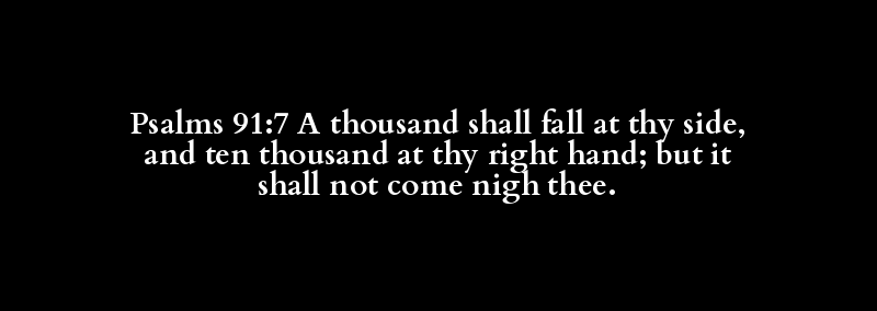 Psalms 91:7 A thousand shall fall at thy side, and ten thousand at thy right hand; but it shall not come nigh thee.