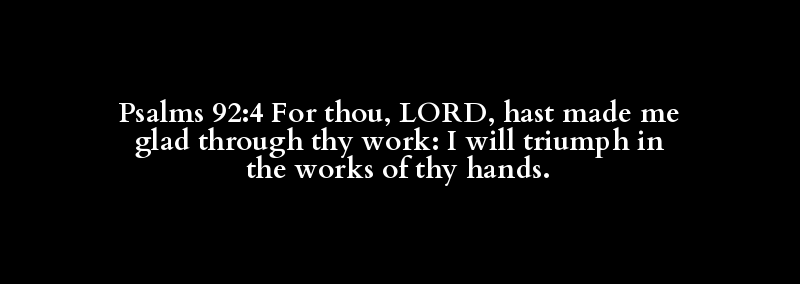 Psalms 92:4 For thou, LORD, hast made me glad through thy work: I will triumph in the works of thy hands.