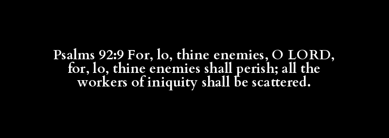 Psalms 92:9 For, lo, thine enemies, O LORD, for, lo, thine enemies shall perish; all the workers of iniquity shall be scattered.