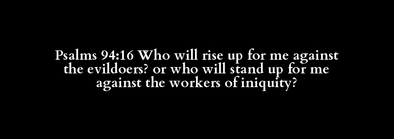 Psalms 94:16 Who will rise up for me against the evildoers? or who will stand up for me against the workers of iniquity?