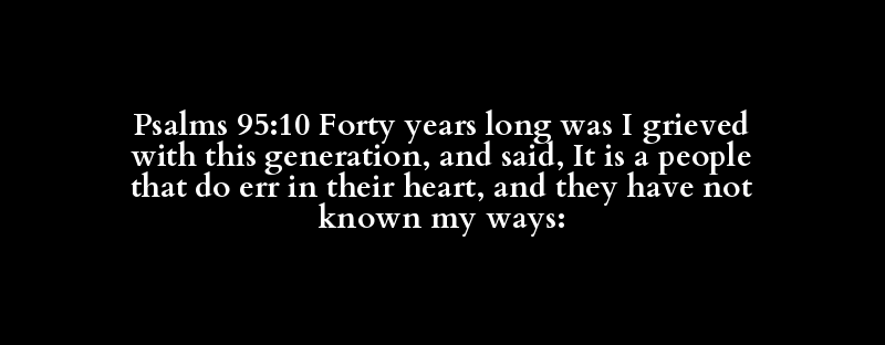 Psalms 95:10 Forty years long was I grieved with this generation, and said, It is a people that do err in their heart, and they have not known my ways:
