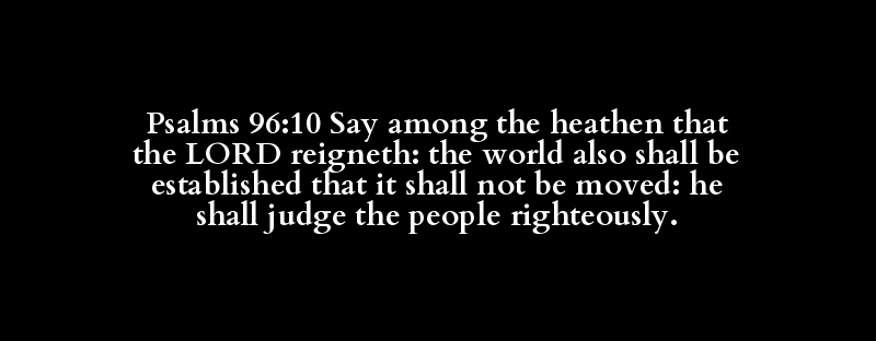 Psalms 96:10 Say among the heathen that the LORD reigneth: the world also shall be established that it shall not be moved: he shall judge the people righteously.