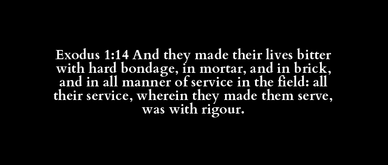 | מָרַר | חַי | מָרַר | קָשֶׁה | עֲבֹדָה | חֹמֶר | לְבֵנָה | עֲבֹדָה | שָׂדֶה | עֲבֹדָה | עָבַד | פֶּרֶךְ |