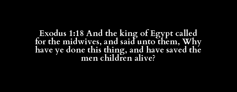Exodus 1:18 And the king of Egypt called for the midwives, and said unto them, Why have ye done this thing, and have saved the men children alive?