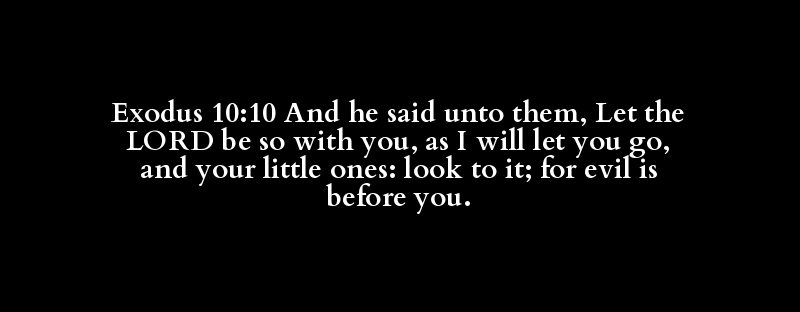 Exodus 10:10 And he said unto them, Let the LORD be so with you, as I will let you go, and your little ones: look to it; for evil is before you.