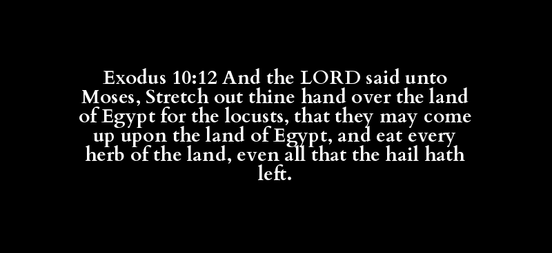 Exodus 10:12 And the LORD said unto Moses, Stretch out thine hand over the land of Egypt for the locusts, that they may come up upon the land of Egypt, and eat every herb of the land, even all that the hail hath left.