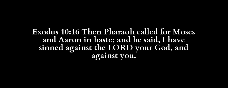 Exodus 10:16 Then Pharaoh called for Moses and Aaron in haste; and he said, I have sinned against the LORD your God, and against you.
