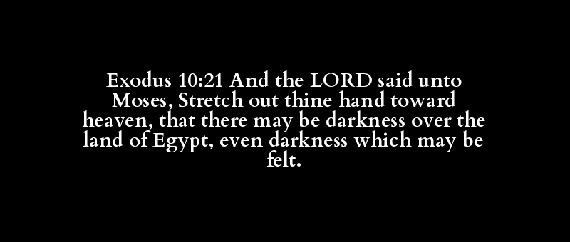 Exodus 10:21 And the LORD said unto Moses, Stretch out thine hand toward heaven, that there may be darkness over the land of Egypt, even darkness which may be felt.