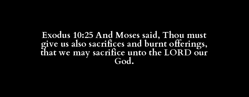Exodus 10:25 And Moses said, Thou must give us also sacrifices and burnt offerings, that we may sacrifice unto the LORD our God.