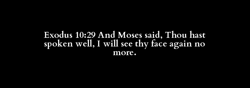 Exodus 10:29 And Moses said, Thou hast spoken well, I will see thy face again no more.