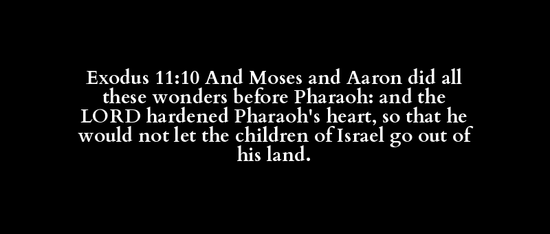 Exodus 11:10 And Moses and Aaron did all these wonders before Pharaoh: and the LORD hardened Pharaoh's heart, so that he would not let the children of Israel go out of his land.