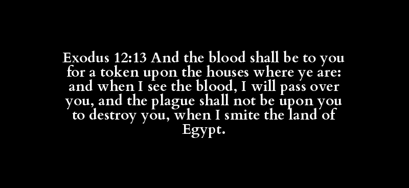 Exodus 12:13 And the blood shall be to you for a token upon the houses where ye are: and when I see the blood, I will pass over you, and the plague shall not be upon you to destroy you, when I smite the land of Egypt.