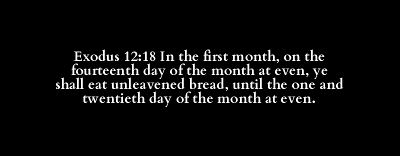 Exodus 12:18 In the first month, on the fourteenth day of the month at even, ye shall eat unleavened bread, until the one and twentieth day of the month at even.