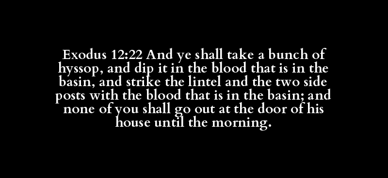 Exodus 12:22 And ye shall take a bunch of hyssop, and dip it in the blood that is in the basin, and strike the lintel and the two side posts with the blood that is in the basin; and none of you shall go out at the door of his house until the morning.