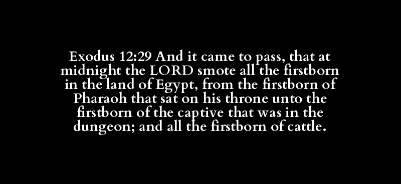 Exodus 12:29 And it came to pass, that at midnight the LORD smote all the firstborn in the land of Egypt, from the firstborn of Pharaoh that sat on his throne unto the firstborn of the captive that was in the dungeon; and all the firstborn of cattle.