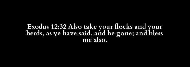Exodus 12:32 Also take your flocks and your herds, as ye have said, and be gone; and bless me also.