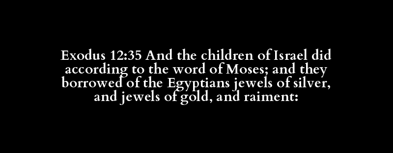 Exodus 12:35 And the children of Israel did according to the word of Moses; and they borrowed of the Egyptians jewels of silver, and jewels of gold, and raiment: