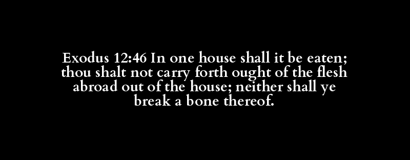 Exodus 12:46 In one house shall it be eaten; thou shalt not carry forth ought of the flesh abroad out of the house; neither shall ye break a bone thereof.