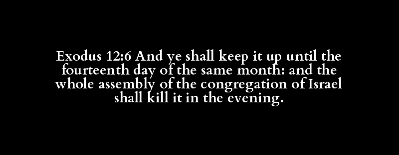 Exodus 12:6 And ye shall keep it up until the fourteenth day of the same month: and the whole assembly of the congregation of Israel shall kill it in the evening.