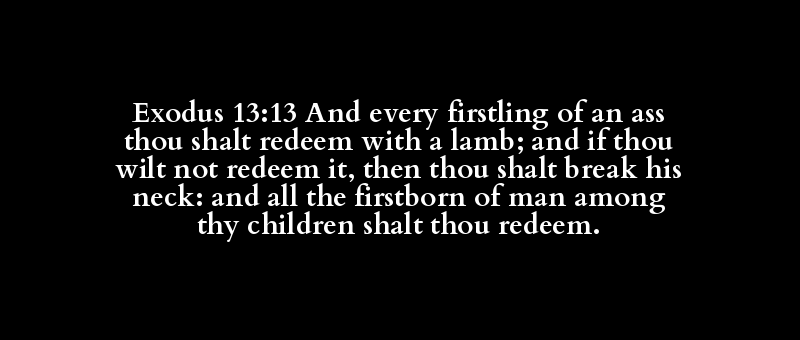 Exodus 13:13 And every firstling of an ass thou shalt redeem with a lamb; and if thou wilt not redeem it, then thou shalt break his neck: and all the firstborn of man among thy children shalt thou redeem.