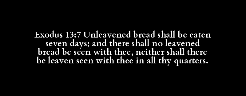 Exodus 13:7 Unleavened bread shall be eaten seven days; and there shall no leavened bread be seen with thee, neither shall there be leaven seen with thee in all thy quarters.