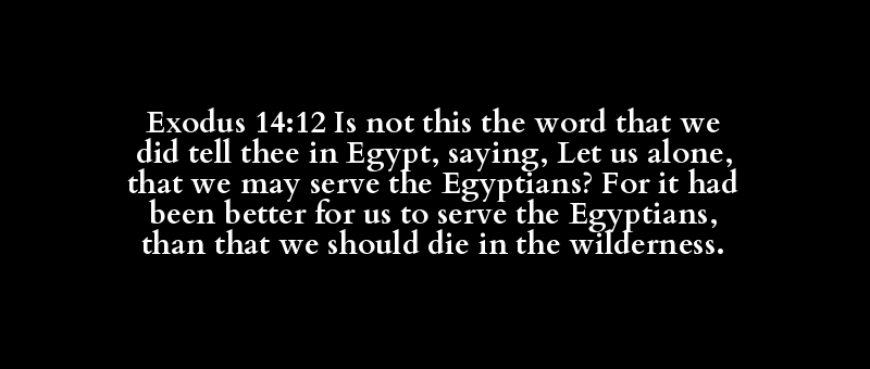 Exodus 14:12 Is not this the word that we did tell thee in Egypt, saying, Let us alone, that we may serve the Egyptians? For it had been better for us to serve the Egyptians, than that we should die in the wilderness.