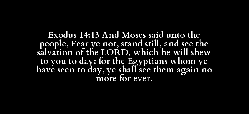 Exodus 14:13 And Moses said unto the people, Fear ye not, stand still, and see the salvation of the LORD, which he will shew to you to day: for the Egyptians whom ye have seen to day, ye shall see them again no more for ever.