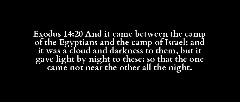 Exodus 14:20 And it came between the camp of the Egyptians and the camp of Israel; and it was a cloud and darkness to them, but it gave light by night to these: so that the one came not near the other all the night.
