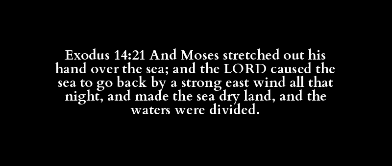 Exodus 14:21 And Moses stretched out his hand over the sea; and the LORD caused the sea to go back by a strong east wind all that night, and made the sea dry land, and the waters were divided.