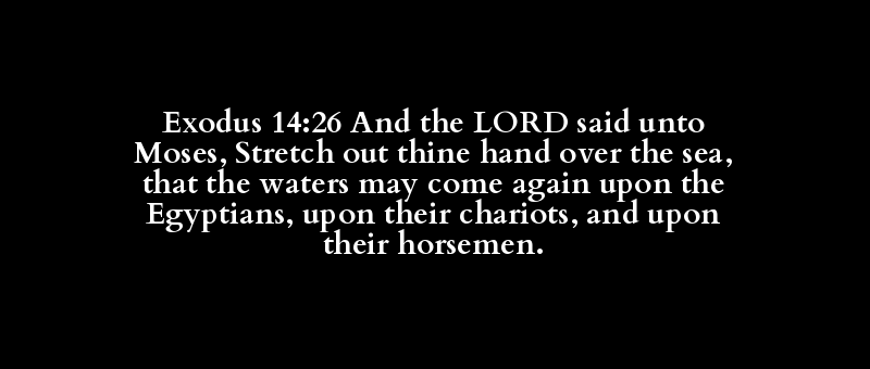 Exodus 14:26 And the LORD said unto Moses, Stretch out thine hand over the sea, that the waters may come again upon the Egyptians, upon their chariots, and upon their horsemen.