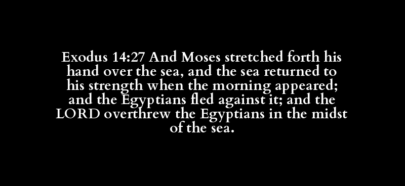 Exodus 14:27 And Moses stretched forth his hand over the sea, and the sea returned to his strength when the morning appeared; and the Egyptians fled against it; and the LORD overthrew the Egyptians in the midst of the sea.
