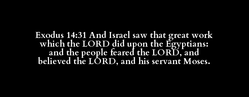 Exodus 14:31 And Israel saw that great work which the LORD did upon the Egyptians: and the people feared the LORD, and believed the LORD, and his servant Moses.