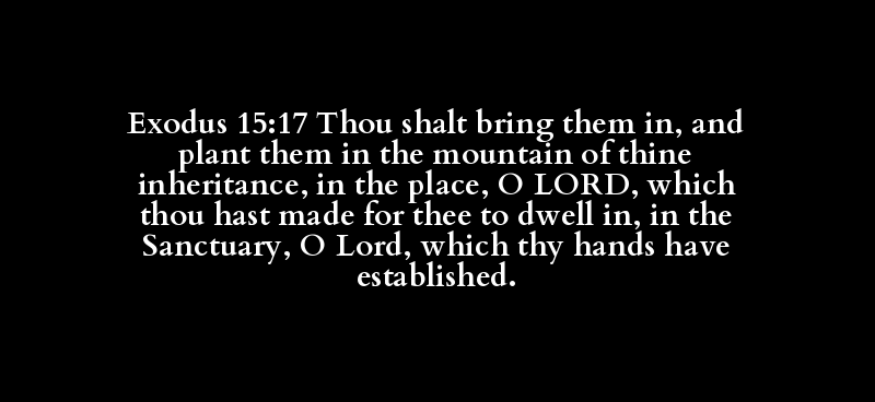 Exodus 15:17 Thou shalt bring them in, and plant them in the mountain of thine inheritance, in the place, O LORD, which thou hast made for thee to dwell in, in the Sanctuary, O Lord, which thy hands have established.