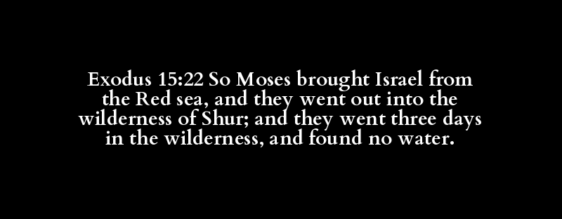 Exodus 15:22 So Moses brought Israel from the Red sea, and they went out into the wilderness of Shur; and they went three days in the wilderness, and found no water.