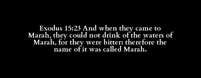 Exodus 15:23 And when they came to Marah, they could not drink of the waters of Marah, for they were bitter: therefore the name of it was called Marah.