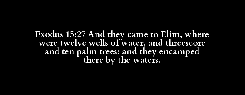 Exodus 15:27 And they came to Elim, where were twelve wells of water, and threescore and ten palm trees: and they encamped there by the waters.