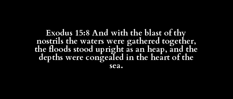 Exodus 15:8 And with the blast of thy nostrils the waters were gathered together, the floods stood upright as an heap, and the depths were congealed in the heart of the sea.