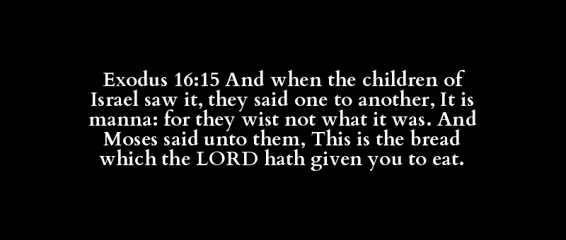 Exodus 16:15 And when the children of Israel saw it, they said one to another, It is manna: for they wist not what it was. And Moses said unto them, This is the bread which the LORD hath given you to eat.
