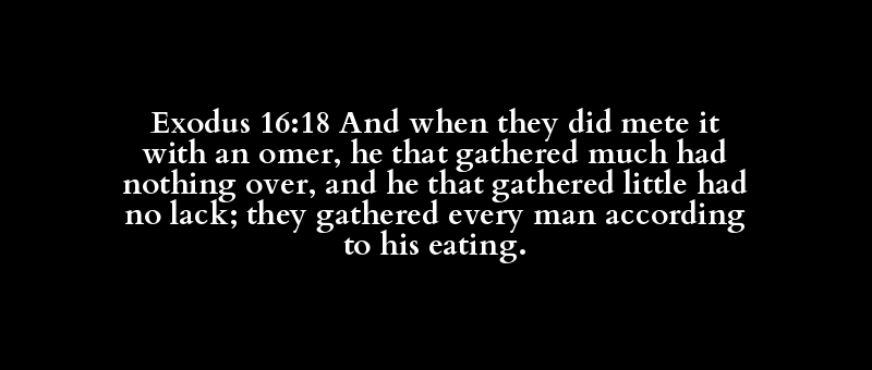 Exodus 16:18 And when they did mete it with an omer, he that gathered much had nothing over, and he that gathered little had no lack; they gathered every man according to his eating.