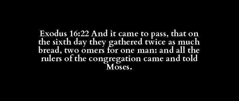 Exodus 16:22 And it came to pass, that on the sixth day they gathered twice as much bread, two omers for one man: and all the rulers of the congregation came and told Moses.
