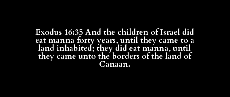 Exodus 16:35 And the children of Israel did eat manna forty years, until they came to a land inhabited; they did eat manna, until they came unto the borders of the land of Canaan.