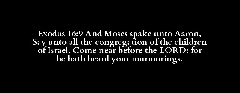 Exodus 16:9 And Moses spake unto Aaron, Say unto all the congregation of the children of Israel, Come near before the LORD: for he hath heard your murmurings.