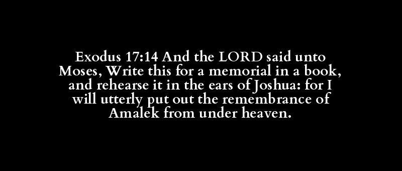 Exodus 17:14 And the LORD said unto Moses, Write this for a memorial in a book, and rehearse it in the ears of Joshua: for I will utterly put out the remembrance of Amalek from under heaven.