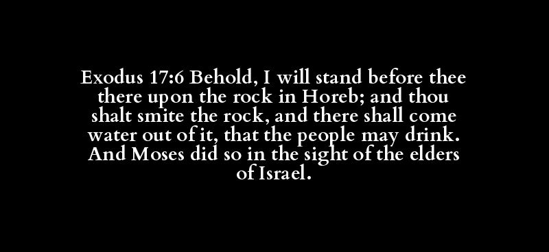 Exodus 17:6 Behold, I will stand before thee there upon the rock in Horeb; and thou shalt smite the rock, and there shall come water out of it, that the people may drink. And Moses did so in the sight of the elders of Israel.