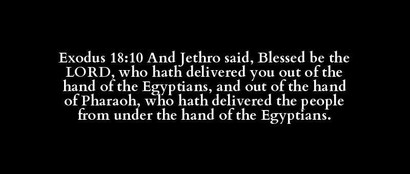 Exodus 18:10 And Jethro said, Blessed be the LORD, who hath delivered you out of the hand of the Egyptians, and out of the hand of Pharaoh, who hath delivered the people from under the hand of the Egyptians.