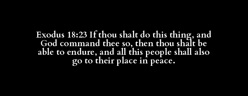 Exodus 18:23 If thou shalt do this thing, and God command thee so, then thou shalt be able to endure, and all this people shall also go to their place in peace.