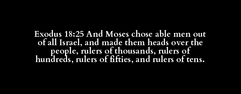 Exodus 18:25 And Moses chose able men out of all Israel, and made them heads over the people, rulers of thousands, rulers of hundreds, rulers of fifties, and rulers of tens.